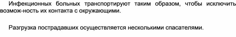 Инфекционных больных транспортируют таким образом, чтобы исключить возмож-ность их контакта с окружающими.