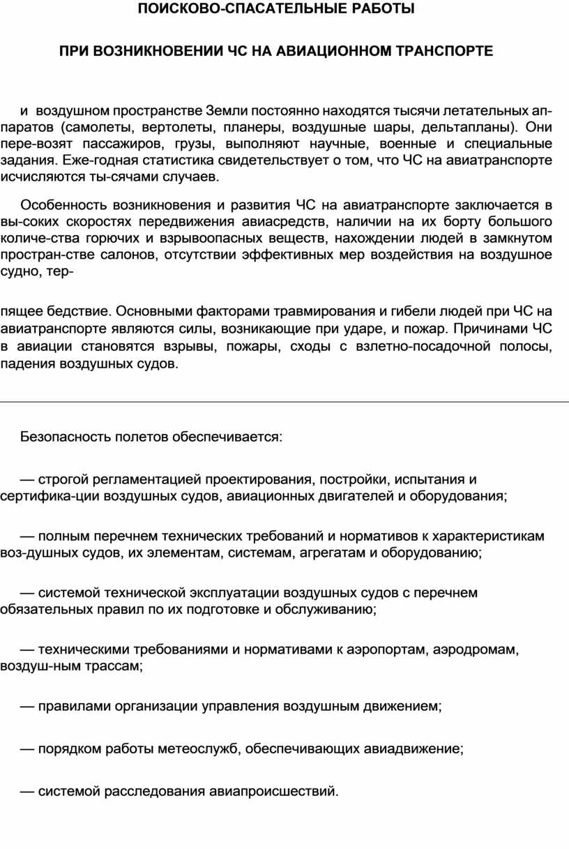 ПРИ ВОЗНИКНОВЕНИИ ЧС НА АВИАЦИОННОМ ТРАНСПОРТЕ