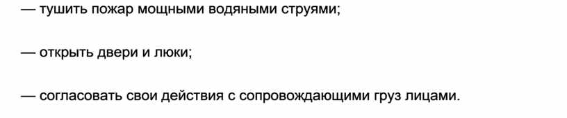 случае пожара в вагоне следует ликвидировать открытое горение снаружи, а за-тем средства пожаротушения подать внутрь вагона (контейнера) через люки и двери. Иногда в местах наиболее интенсивного горения проделываются отверстия в крыше и стенах для ввода средств пожаротушения.