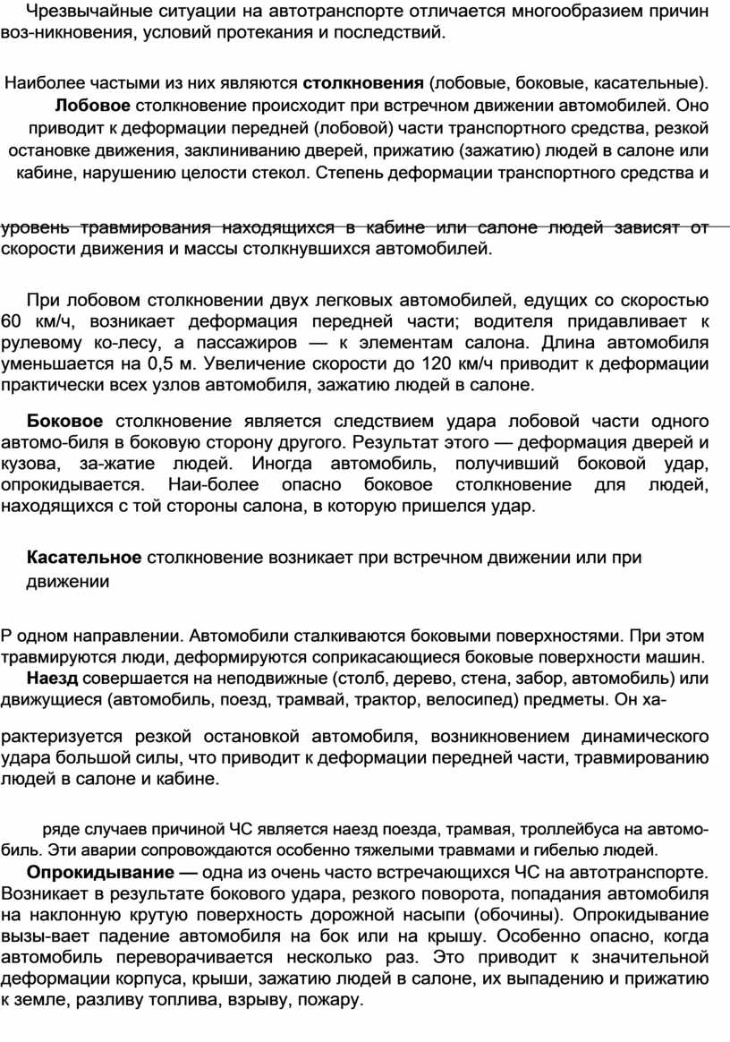 Чрезвычайные ситуации на автотранспорте отличается многообразием причин воз-никновения, условий протекания и последствий.