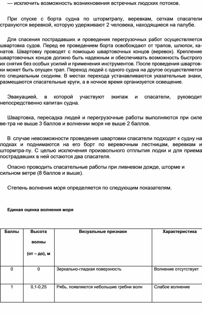 Швартовка, пересадка людей и перегрузочные работы выполняются при силе ве-тра не выше 3 баллов и волнении моря не выше 2 баллов.