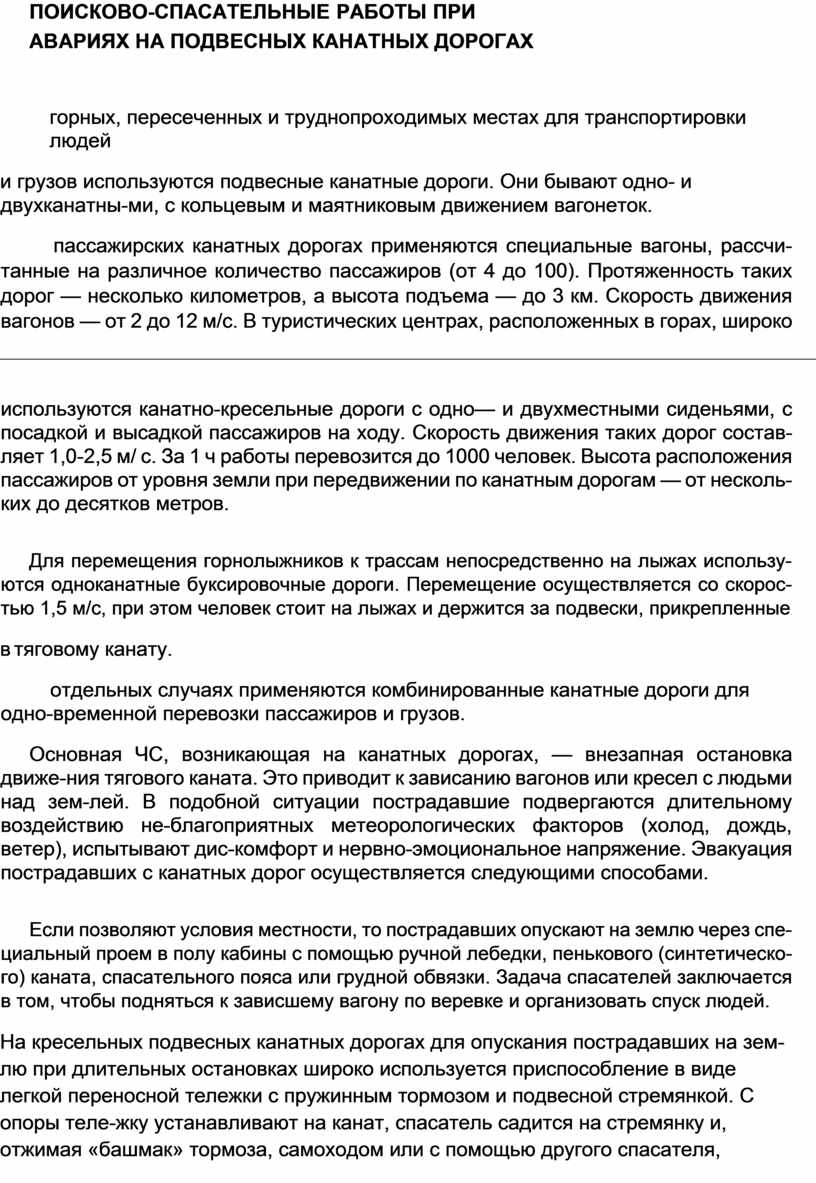 ПОИСКОВО-СПАСАТЕЛЬНЫЕ РАБОТЫ ПРИ АВАРИЯХ НА ПОДВЕСНЫХ КАНАТНЫХ ДОРОГАХ