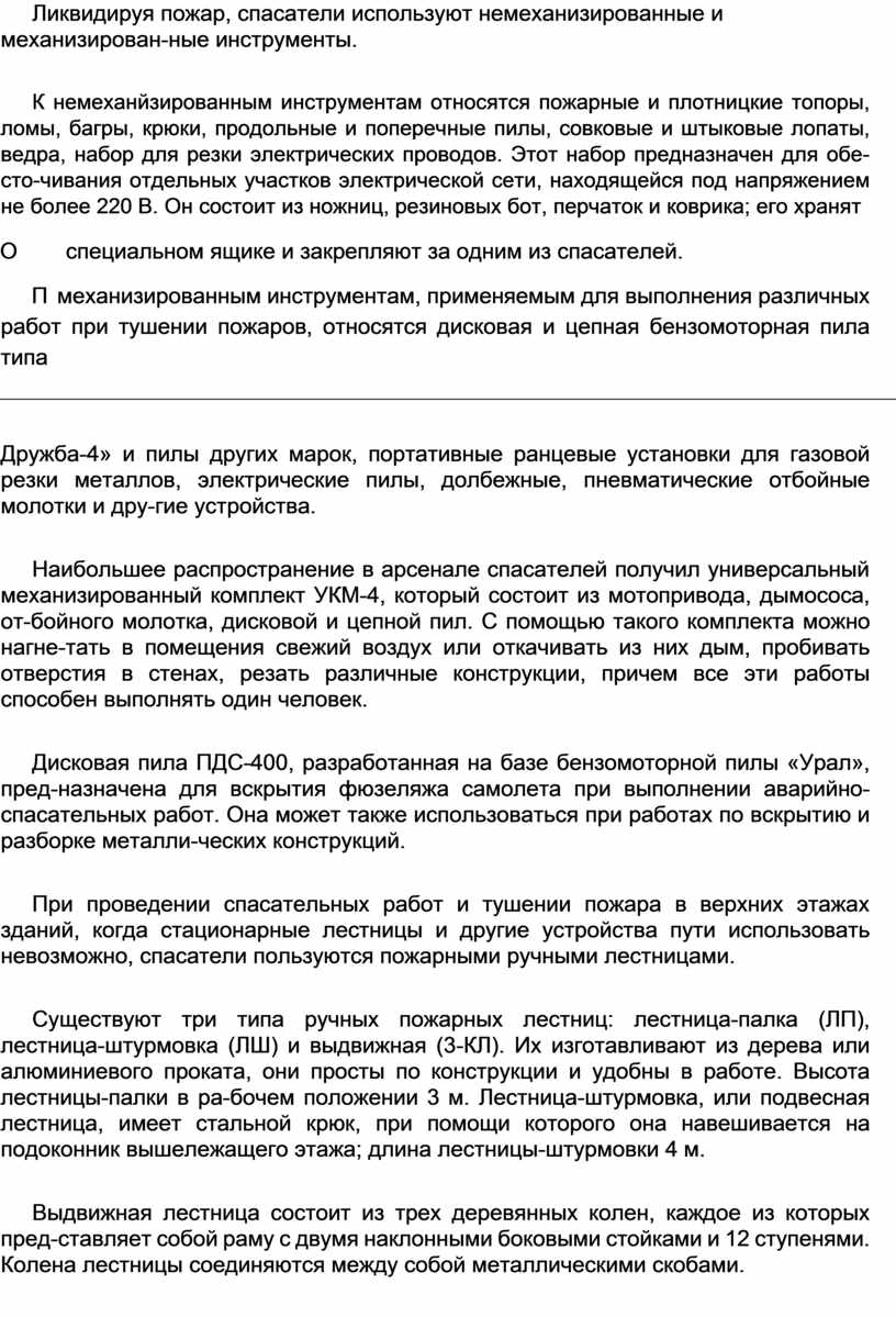 Ликвидируя пожар, спасатели используют немеханизированные и механизирован-ные инструменты.