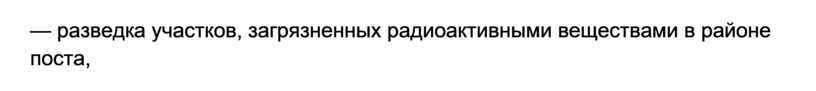 — разведка участков, загрязненных радиоактивными веществами в районе поста,