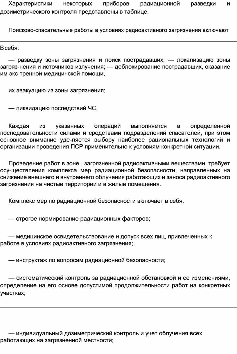 Поисково-спасательные работы в условиях радиоактивного загрязнения включают