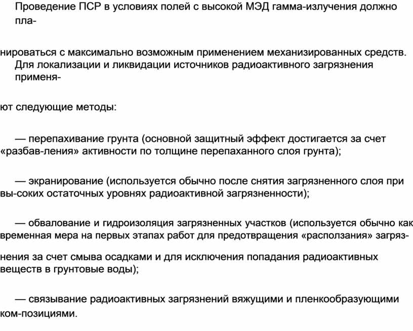 нироваться с максимально возможным применением механизированных средств. Для локализации и ликвидации источников радиоактивного загрязнения применя-