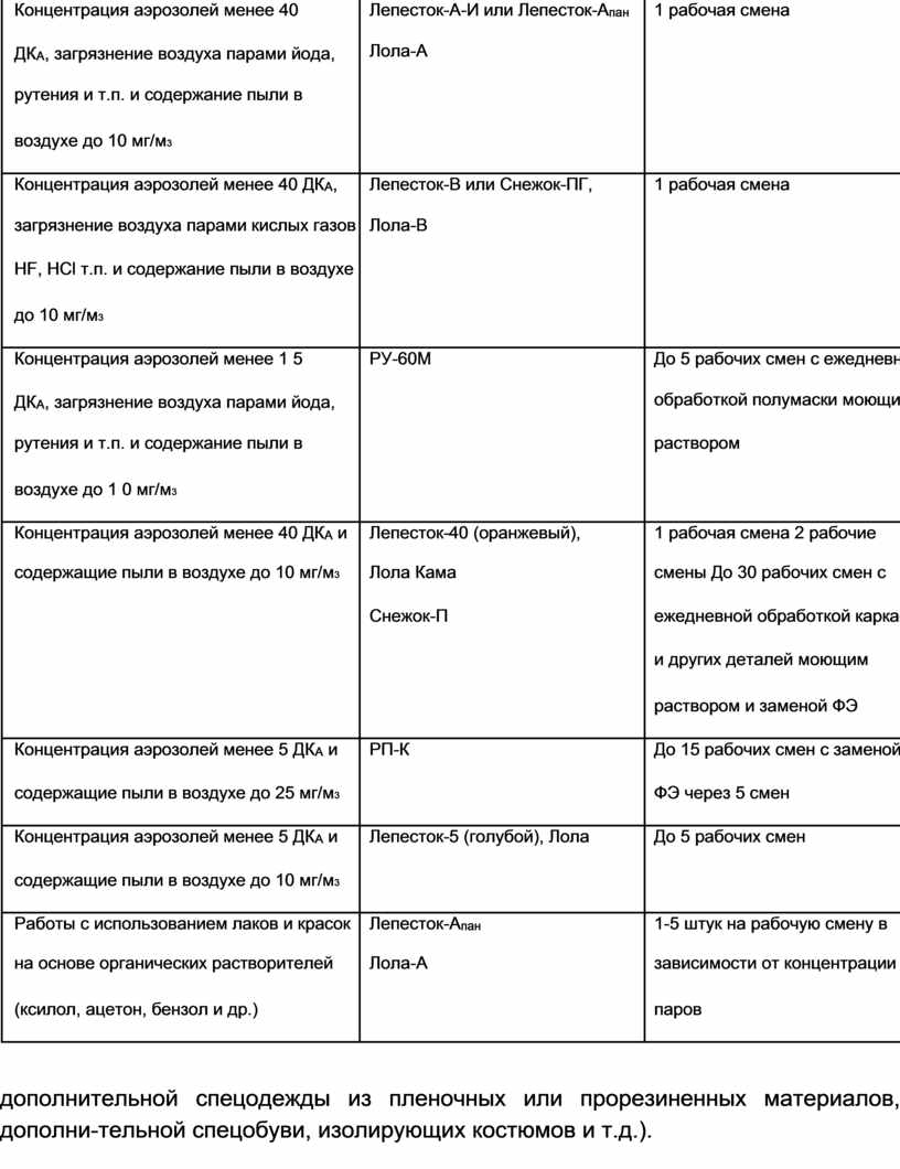 дополнительной спецодежды из пленочных или прорезиненных материалов, дополни-тельной спецобуви, изолирующих костюмов и т.д.).