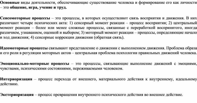 Основные виды деятельности, обеспечивающие существование человека и формирование его как личности – это общение, игра, учение и труд.