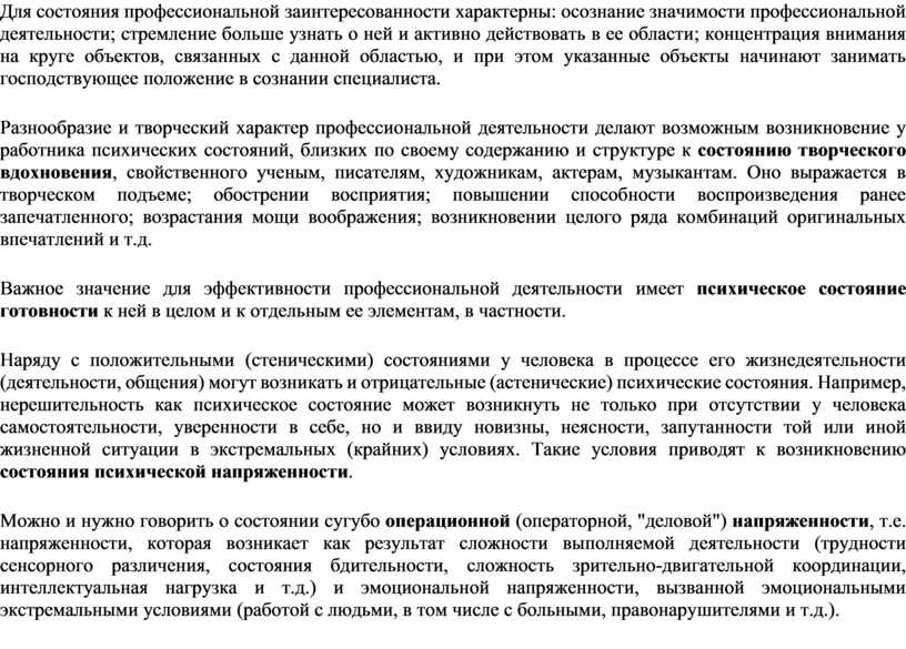 Огромное значение для эффективности трудовой деятельности имеет психическое состояние профессиональной заинтересованности.
