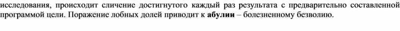 Волевые действия, как и вся психическая деятельность, связаны с функционированием мозга. Важную роль при осуществлении волевых действий выполняют лобные доли мозга, в которых, как показали исследования, происходит сличение достигнутого каждый раз результата с предварительно составленной программой цели. Поражение лобных долей приводит к абулии – болезненному безволию.