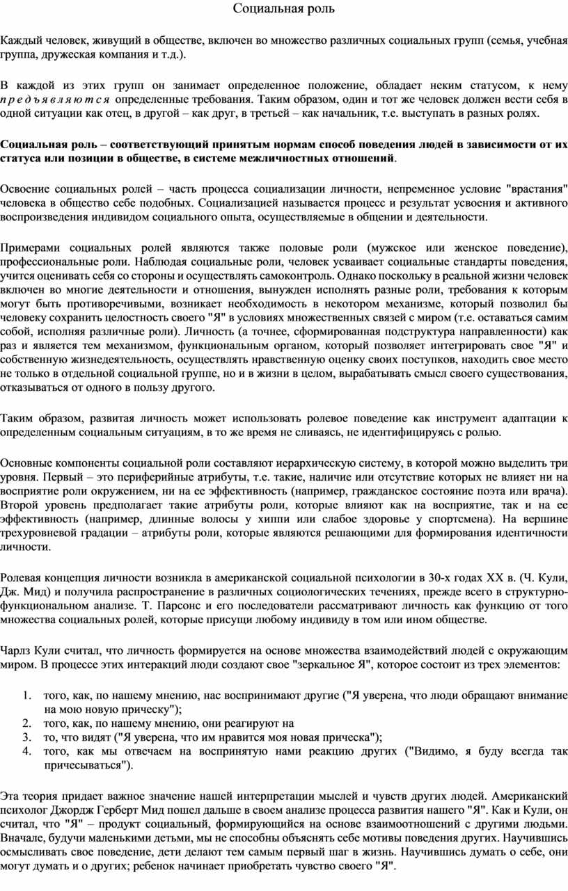 Социальная роль – соответствующий принятым нормам способ поведения людей в зависимости от их статуса или позиции в обществе, в системе межличностных отношений.