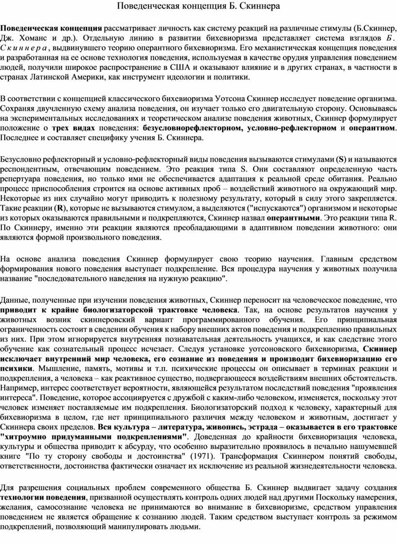 Поведенческая концепция Б. Скиннера