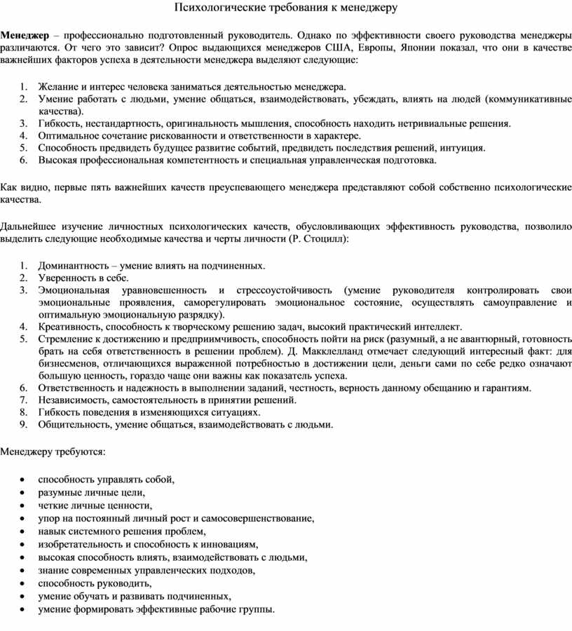 Как видно, первые пять важнейших качеств преуспевающего менеджера представляют собой собственно психологические качества.