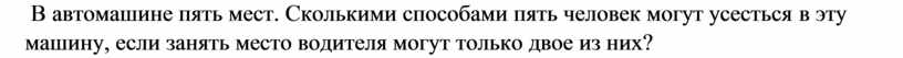 В автомашине пять мест. Сколькими способами пять человек могут усесться в эту машину, если занять место водителя могут только двое из них?