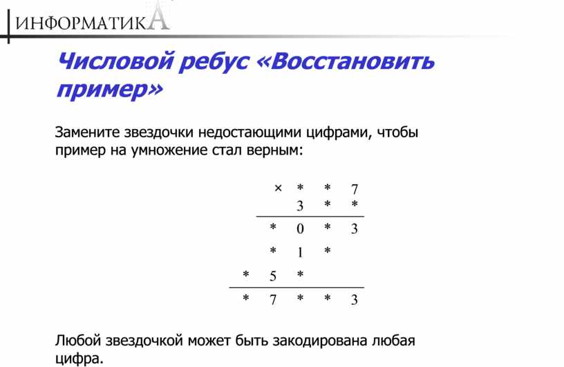 ребус «Восстановить пример»