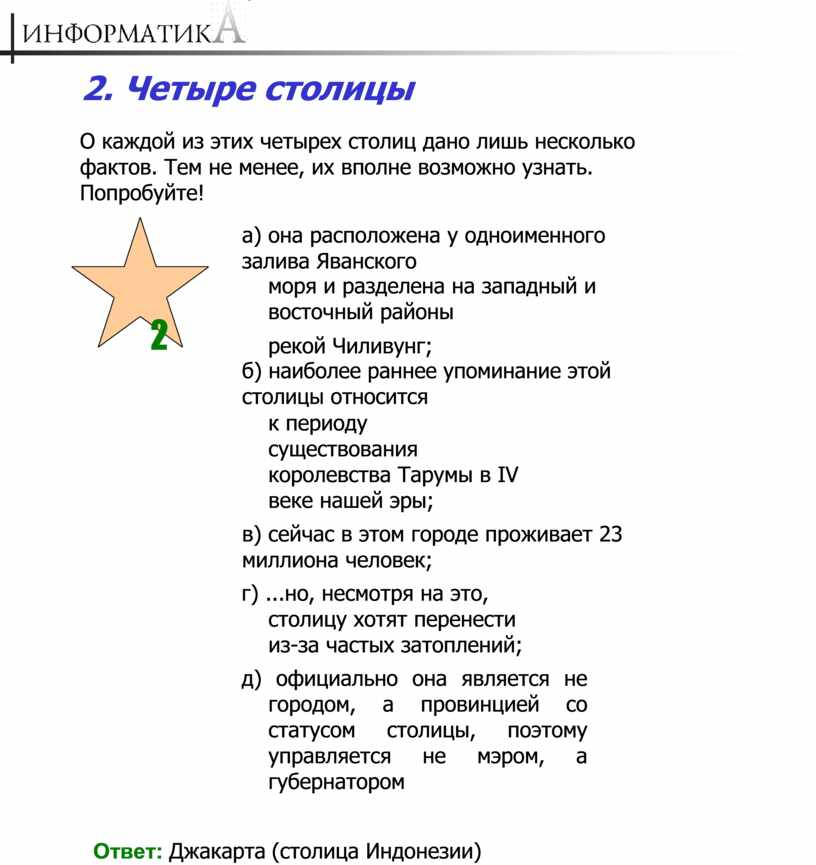 О каждой из этих четырех столиц дано лишь несколько фактов. Тем не менее, их вполне возможно узнать. Попробуйте!