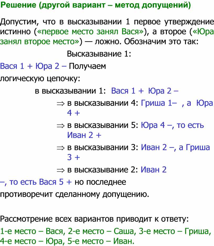 Þ в высказывание 2: Иван 2 –, то есть Вася 5 + но последнее противоречит сделанному допущению.