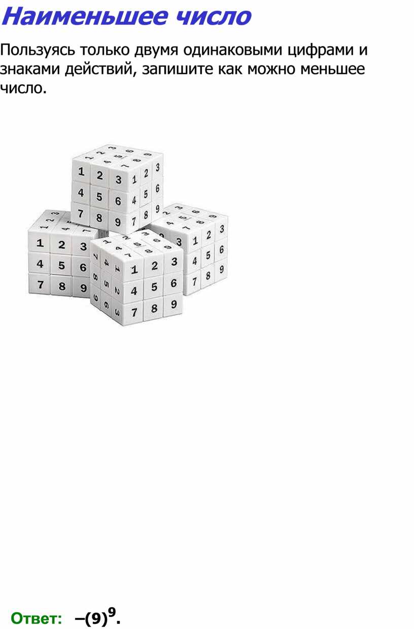 Пользуясь только двумя одинаковыми цифрами и знаками действий, запишите как можно меньшее число.