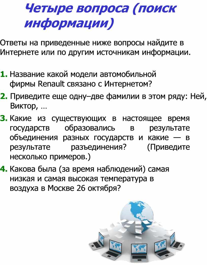 Ответы на приведенные ниже вопросы найдите в Интернете или по другим источникам информации.