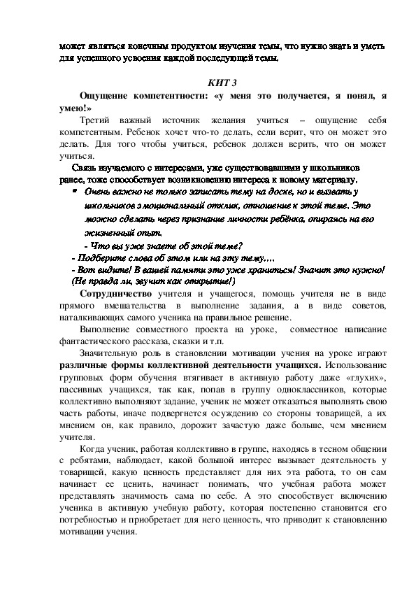 учащихся. То, что для одного ученика является решающим, для другого
