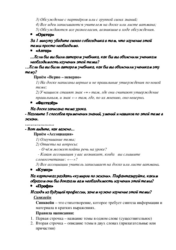 Что я знаю по теме урока или мне кажется, что я знаю?3) Обсуждение с партнёром или с группой своих знаний;