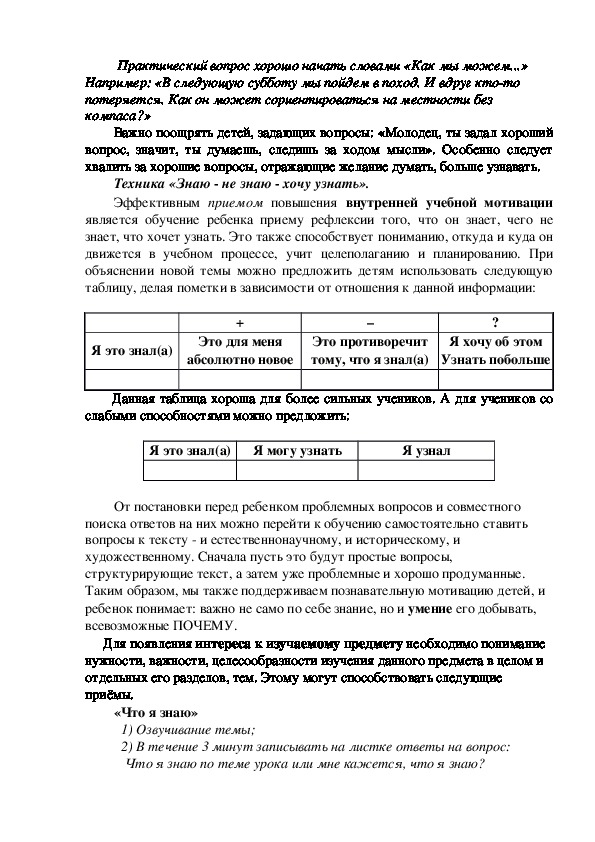 Техника «Знаю не знаю хочу узнать».