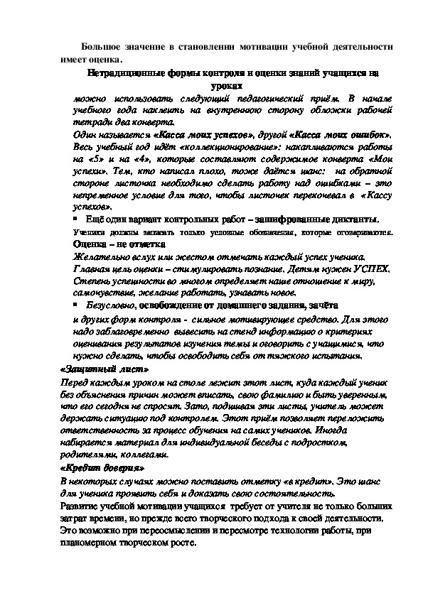 Нетрадиционные формы контроля и оценки знаний учащихся на