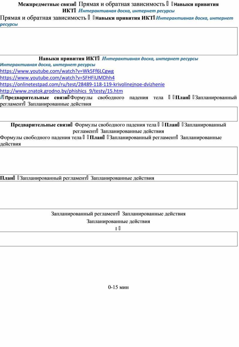 Интерактивная доска, интернет ресурсы https://www.youtube.com/watch?v=Wk5Ff6LCgwg https://www.youtube.com/watch?v=SFHFiUMDhh4 https://onlinetestpad.com/ru/test/28489-118-119-krivolinejnoe-dvizhenie http://www.znatok.grodno.by/phishics_9/testy/15.htm