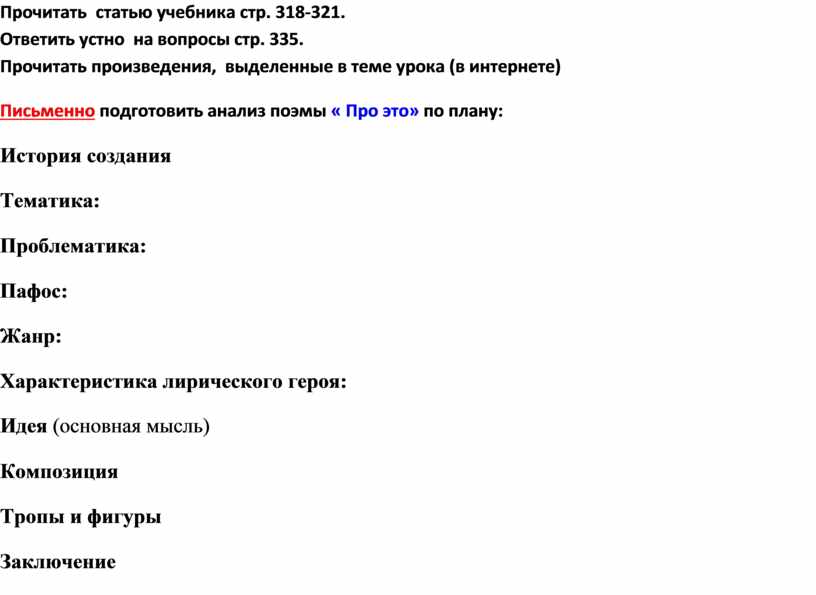 Письменно подготовить анализ поэмы « Про это» по плану: