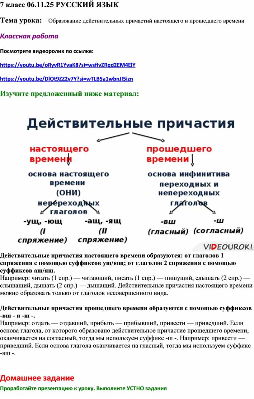 Тема урока: Образование действительных причастий настоящего и прошедшего времени