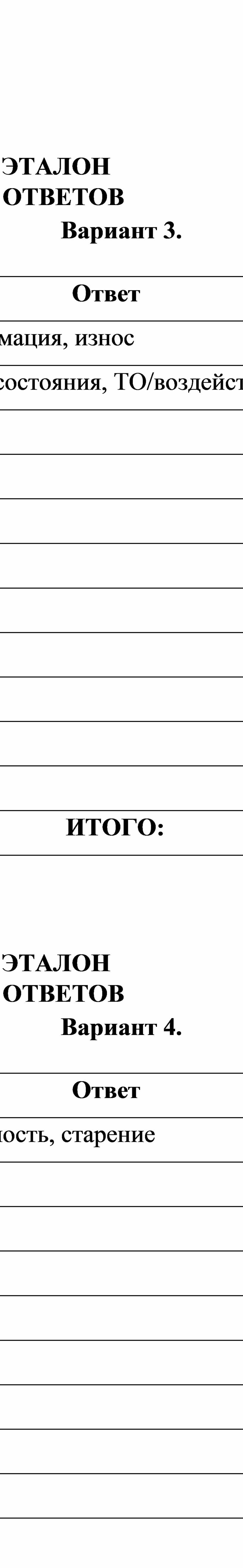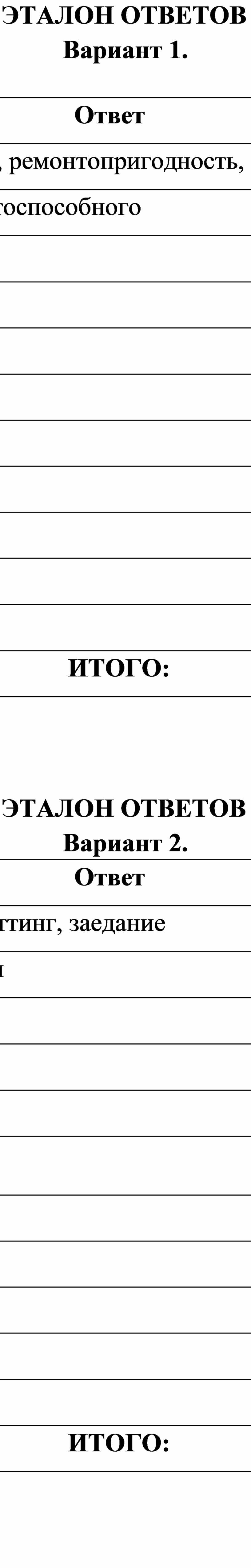 Изнашивание при воздействии абразивных частиц называют ___________________ Изнашивание при воздействии водных растворов кислот, солей и во влажной атмосфере называют _______________________________________________________ Изменение формы и размеров детали под нагрузкой называют ____________________ Степень изменения размеров, формы и веса детали называют ____________________ |