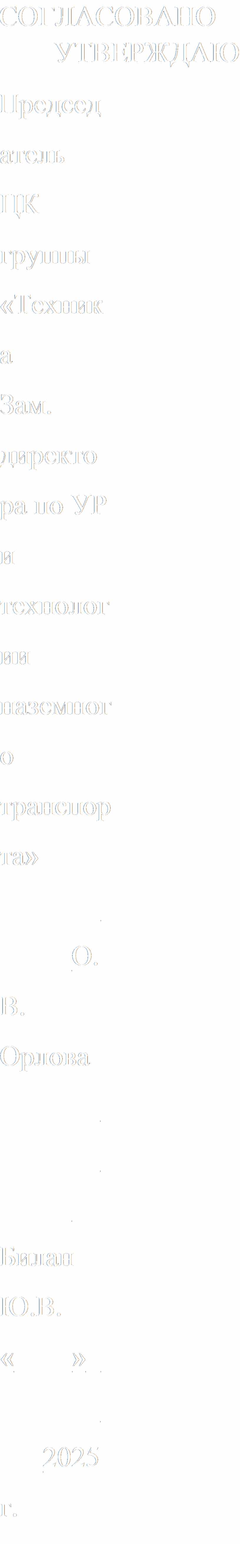 Председатель ЦК группы «Техника Зам. директора по УР и технологии наземного транспорта» ____________О.В. Орлова ___________________ Билан Ю.В. «____»___________2025 г.