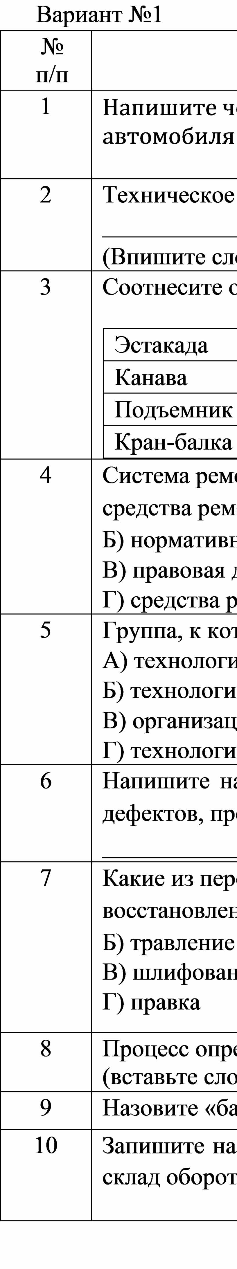 Восстановление _____________________автомобиля, вплоть до 80% от нового называют ______________________ремонтом? (впишите слова вместо пропусков) |