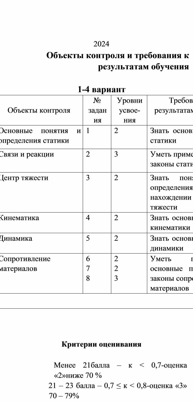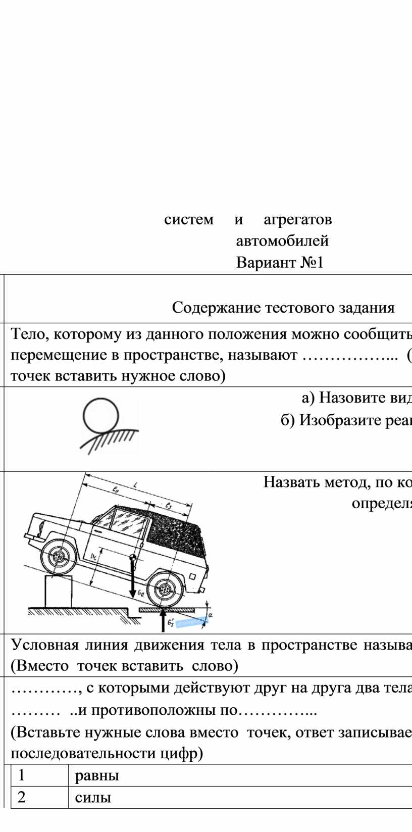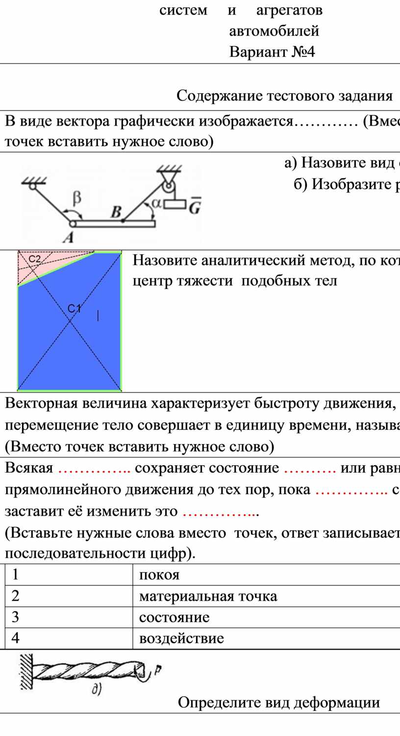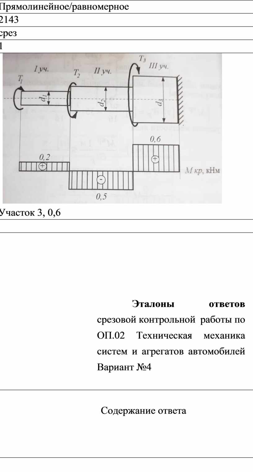 Эталоны ответов срезовой контрольной работы по ОП.02 Техническая механика систем и агрегатов автомобилей Вариант №4