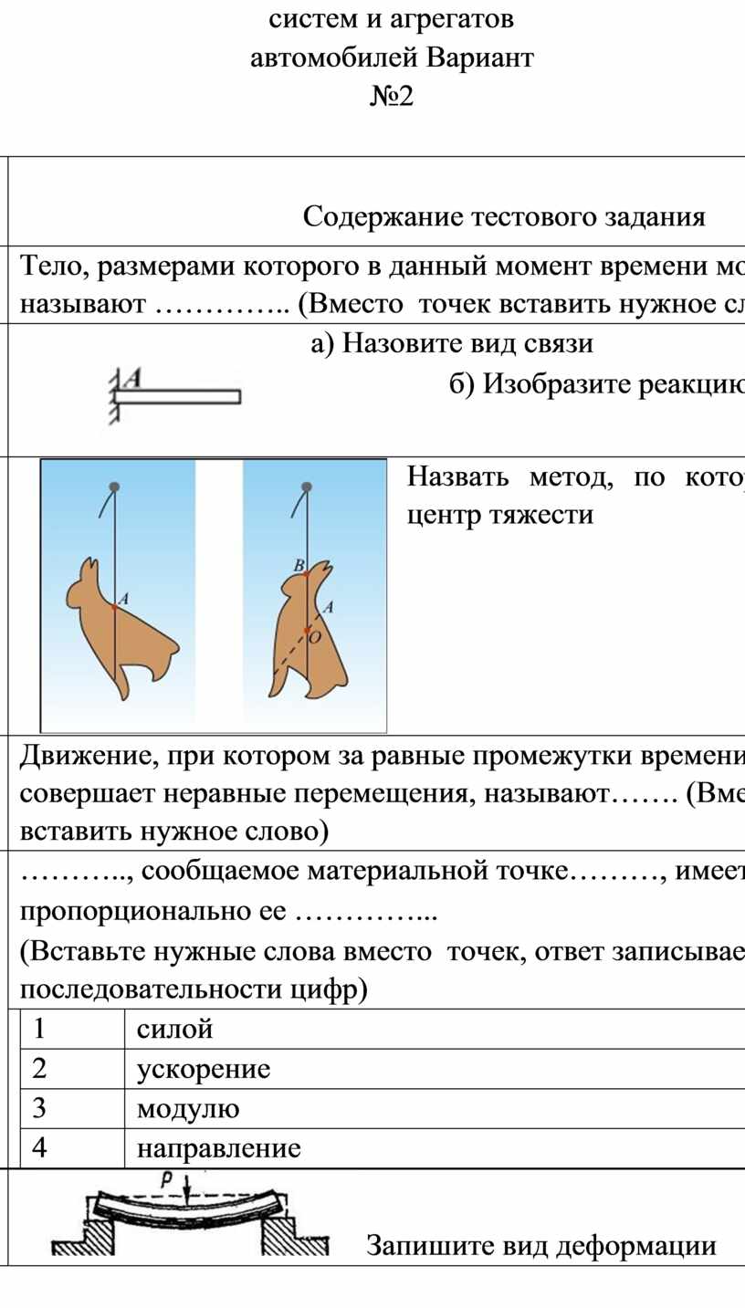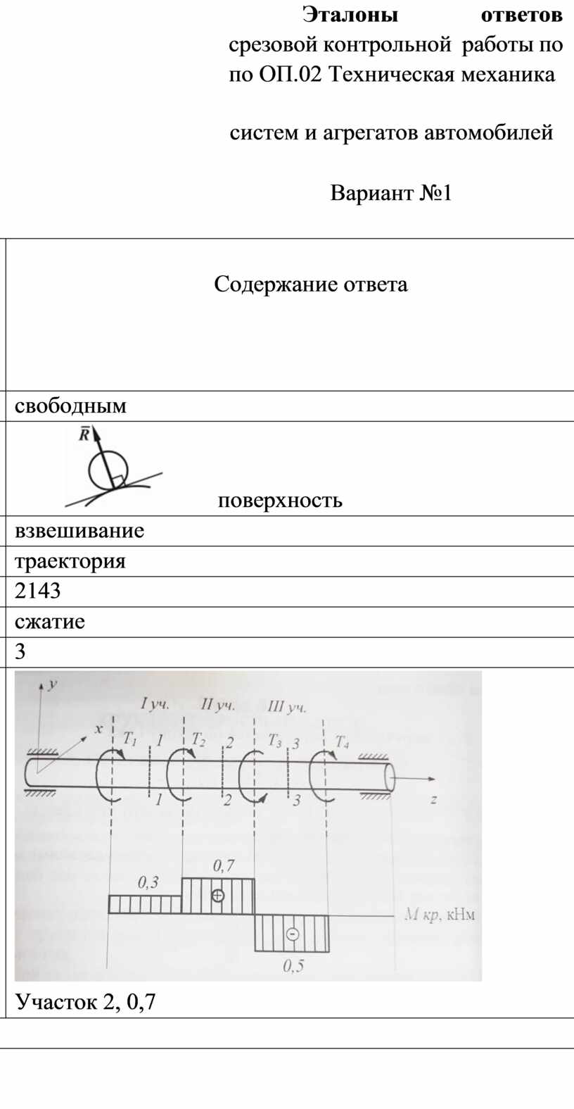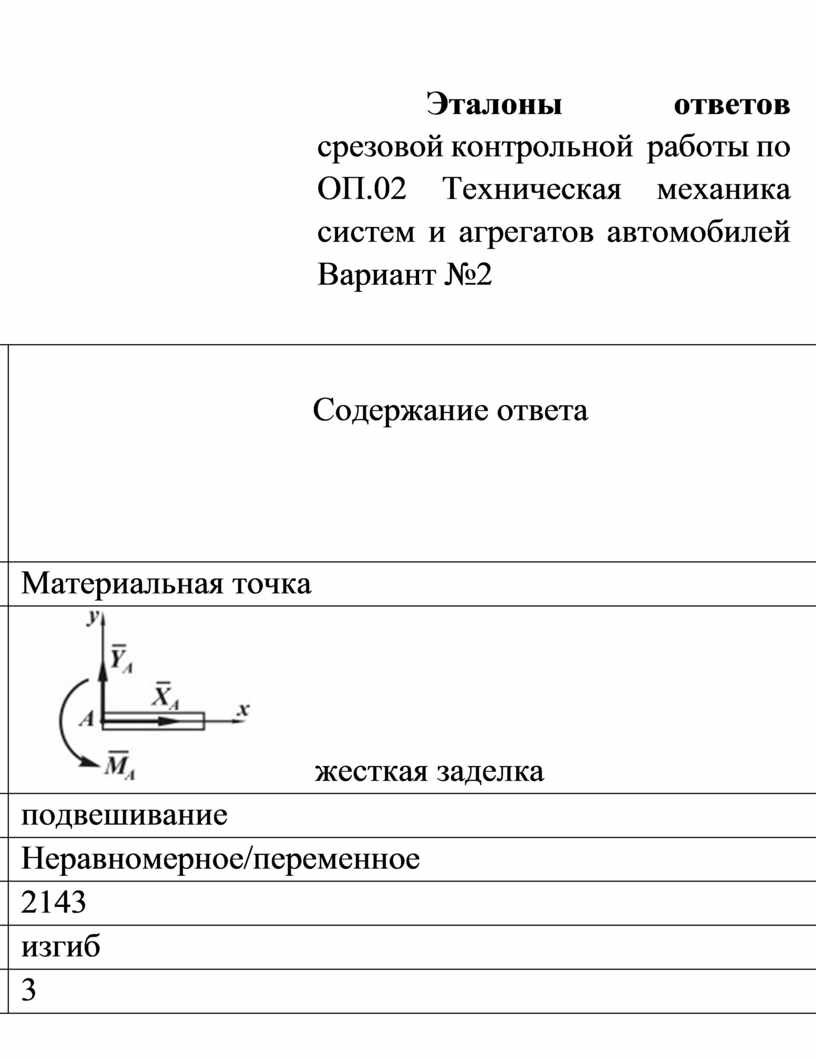 Эталоны ответов срезовой контрольной работы по ОП.02 Техническая механика систем и агрегатов автомобилей Вариант №2