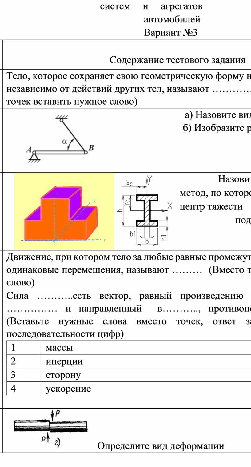 срезовой контрольной работы по ОП.02 Техническая механика систем и агрегатов автомобилей Вариант №3