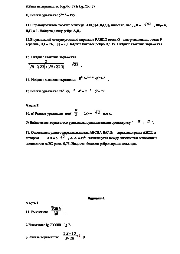 разделам курса алгебры и начал анализа, и геометрии 10 класса.