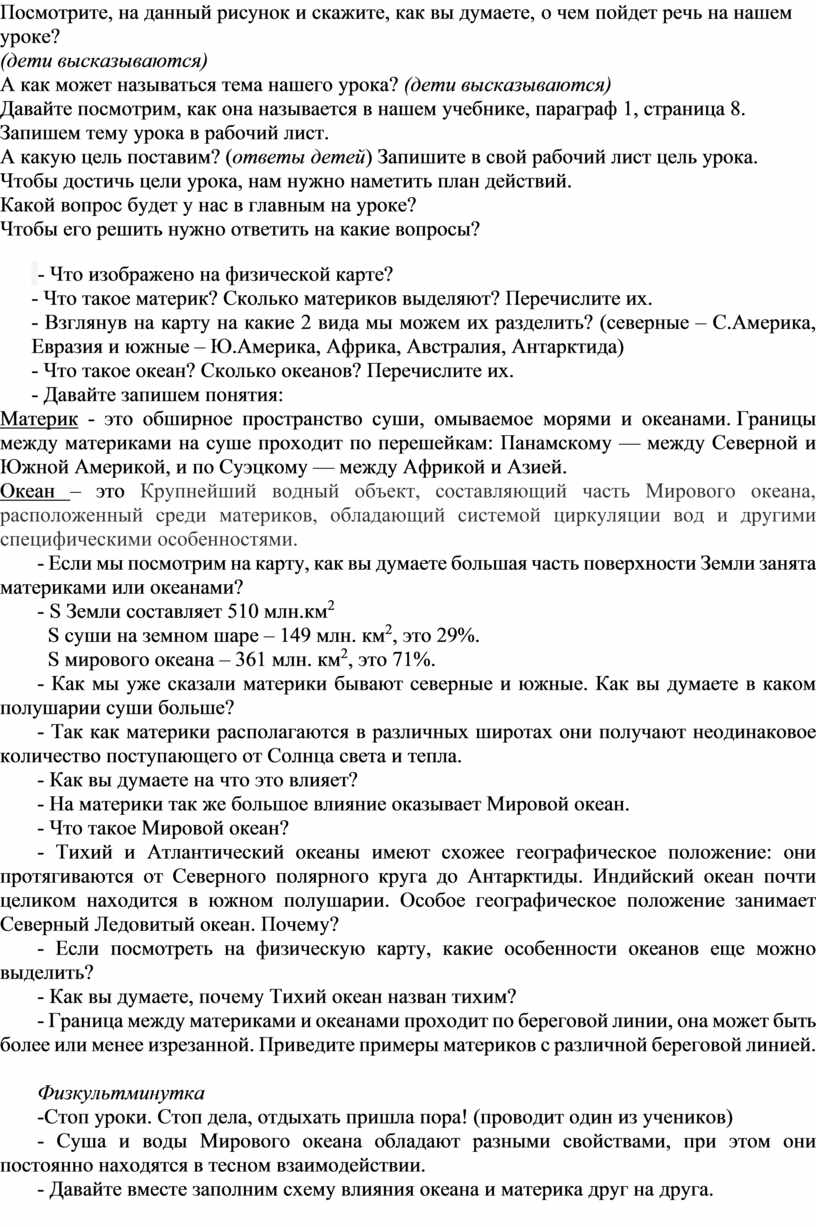 Решаемые проблемы: Что такое материк, океан, мировой океан. Как они влияют друг на друга