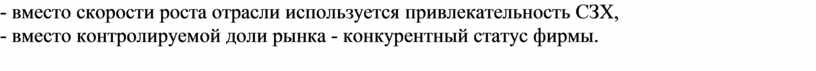 - вместо скорости роста отрасли используется привлекательность СЗХ,