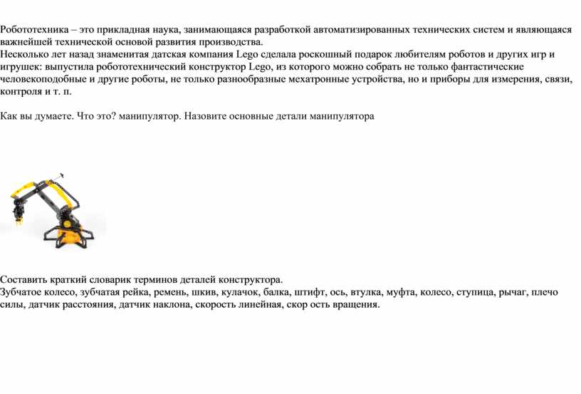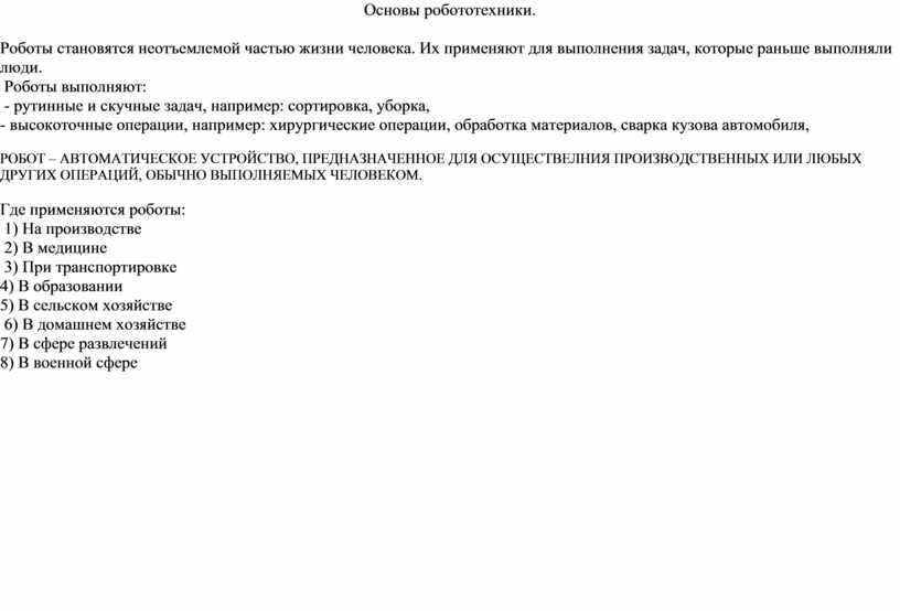 Робототехника – это прикладная наука, занимающаяся разработкой автоматизированных технических систем и являющаяся важнейшей технической основой развития производства.