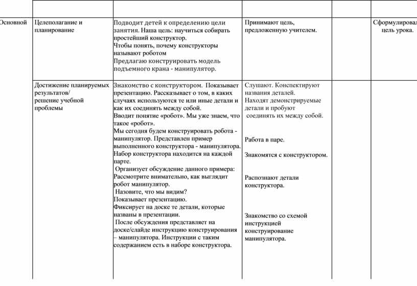 Знакомство со схемой инструкцией конструирование манипулятора. |