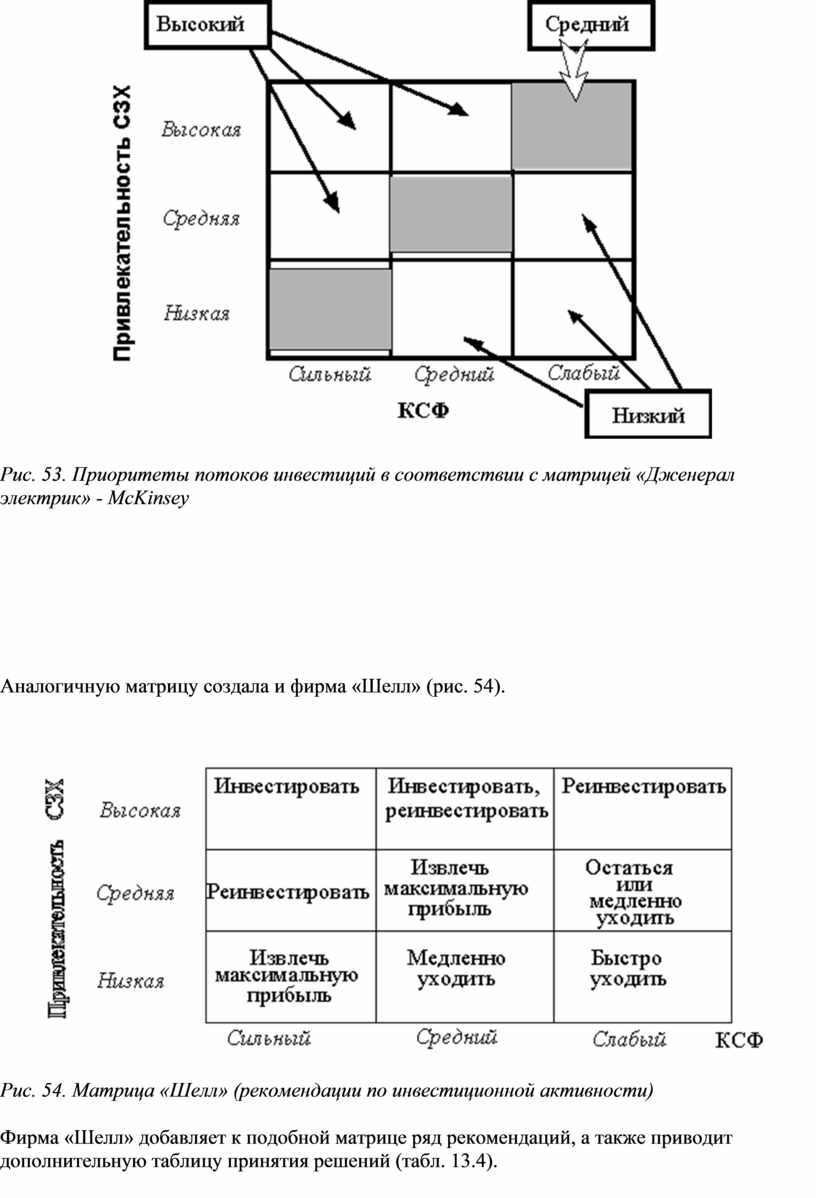 Рис. 53. Приоритеты потоков инвестиций в соответствии с матрицей «Дженерал электрик» - McKinsey
