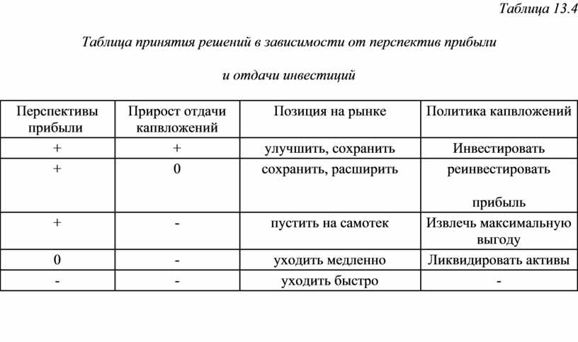 Фирма «Шелл» добавляет к подобной матрице ряд рекомендаций, а также приводит дополнительную таблицу принятия решений (табл. 13.4).