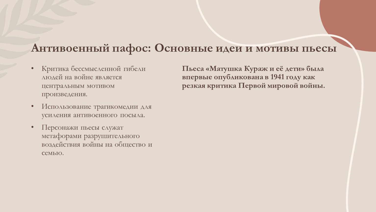 Антивоенный пафос: Основные идеи и мотивы пьесы