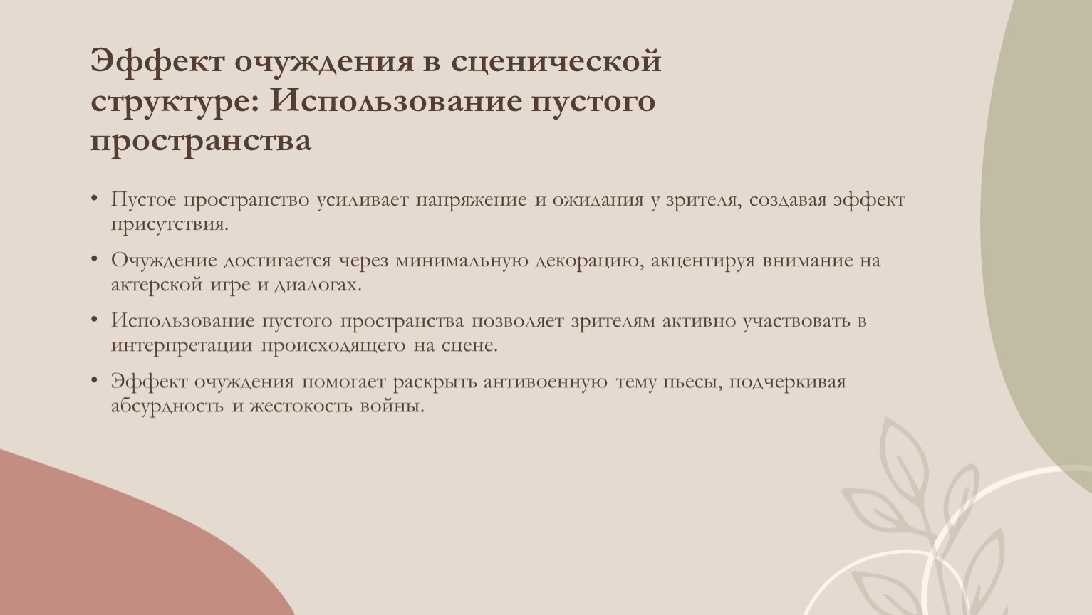 Эффект очуждения в сценической структуре: Использование пустого пространства