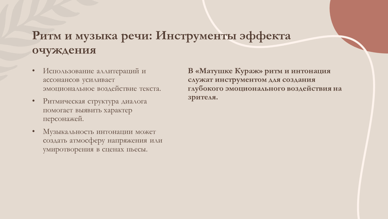 В «Матушке Кураж» ритм и интонация служат инструментом для создания глубокого эмоционального воздействия на зрителя.