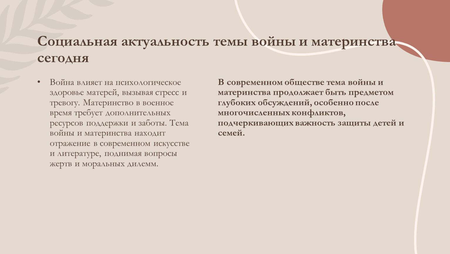 Социальная актуальность темы войны и материнства сегодня