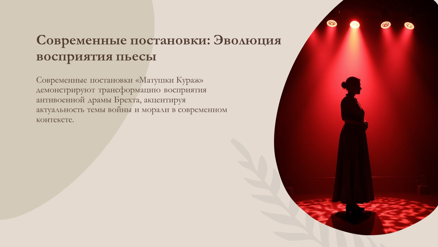 Современные постановки актуализируют антивоенную тему, адаптируя ее к современным конфликтам и вызовам.