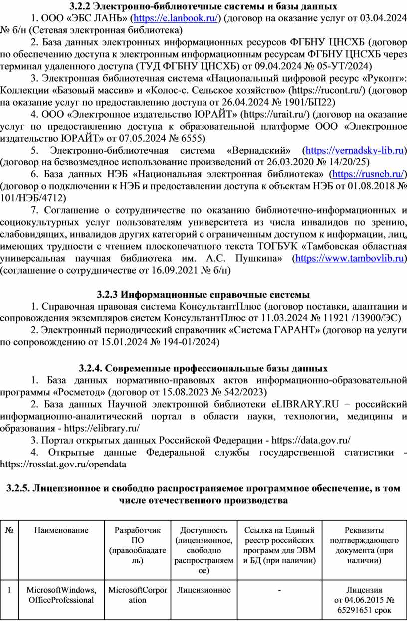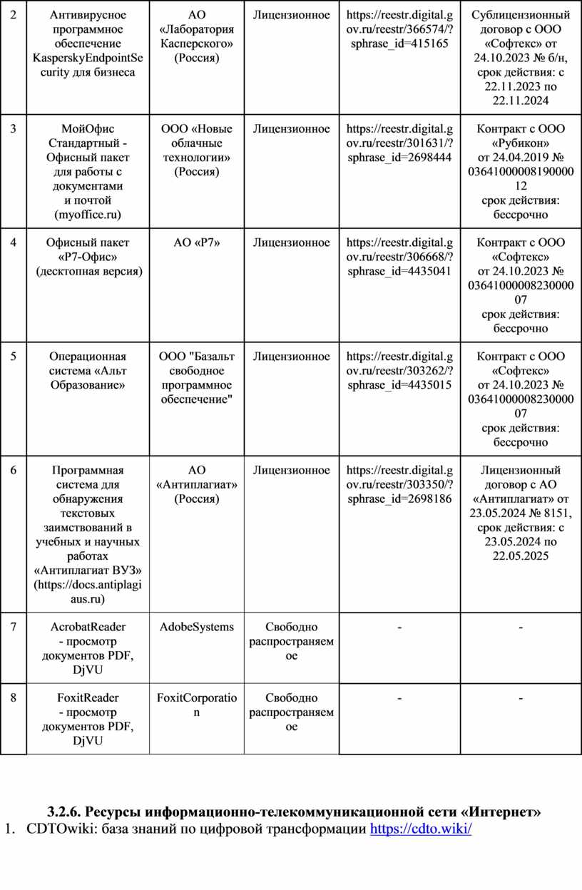 3.2.5. Лицензионное и свободно распространяемое программное обеспечение, в том числе отечественного производства