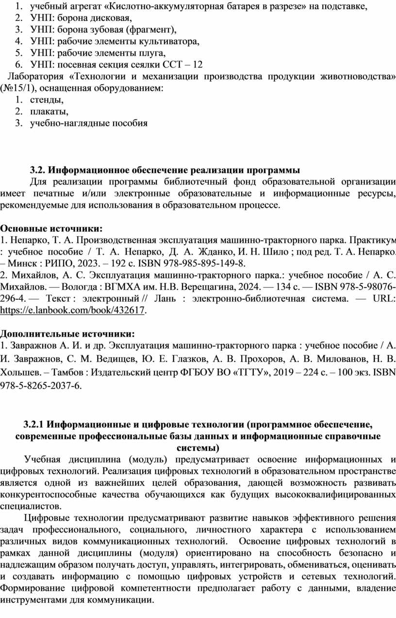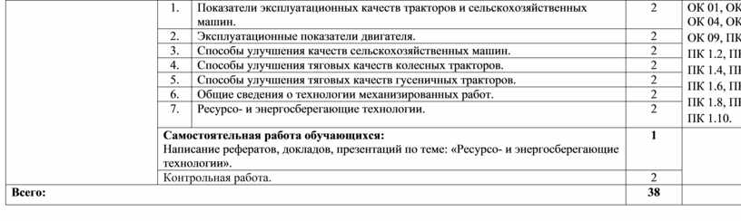 ПМ 01. Эксплуатация сельскохозяйственной техники и оборудования